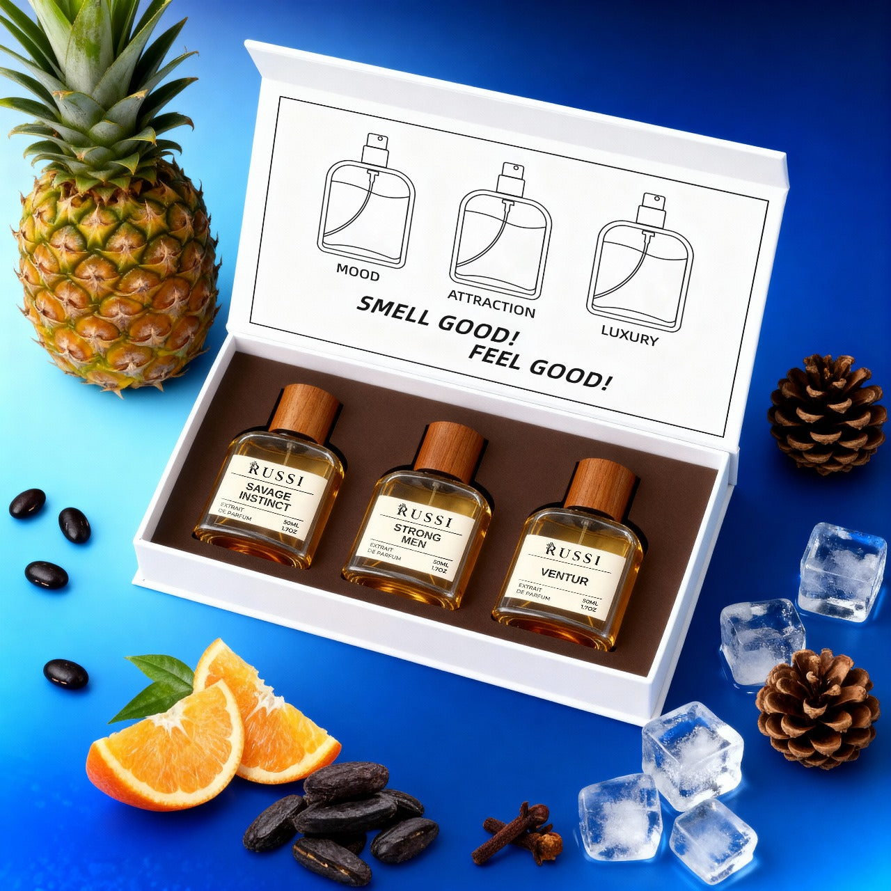 Mežonīgs, provocējošs un atmiņā paliekošs aromāts, kas izceļ vīrišķo harizmu. Komplektā tas simbolizē drosmi, kaislību un nevaldāmu brīvības alkas.