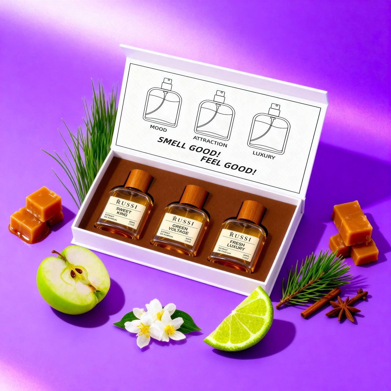 Žalias, elektrizuojantis ir energingas aromats, su gaiviais un šiek tiek aitriais akcentais. Rinkinyje viņš ieved drāzu, jaunatviškumu un izcilību, ideāli piemērots vēlētājiem izcelties.